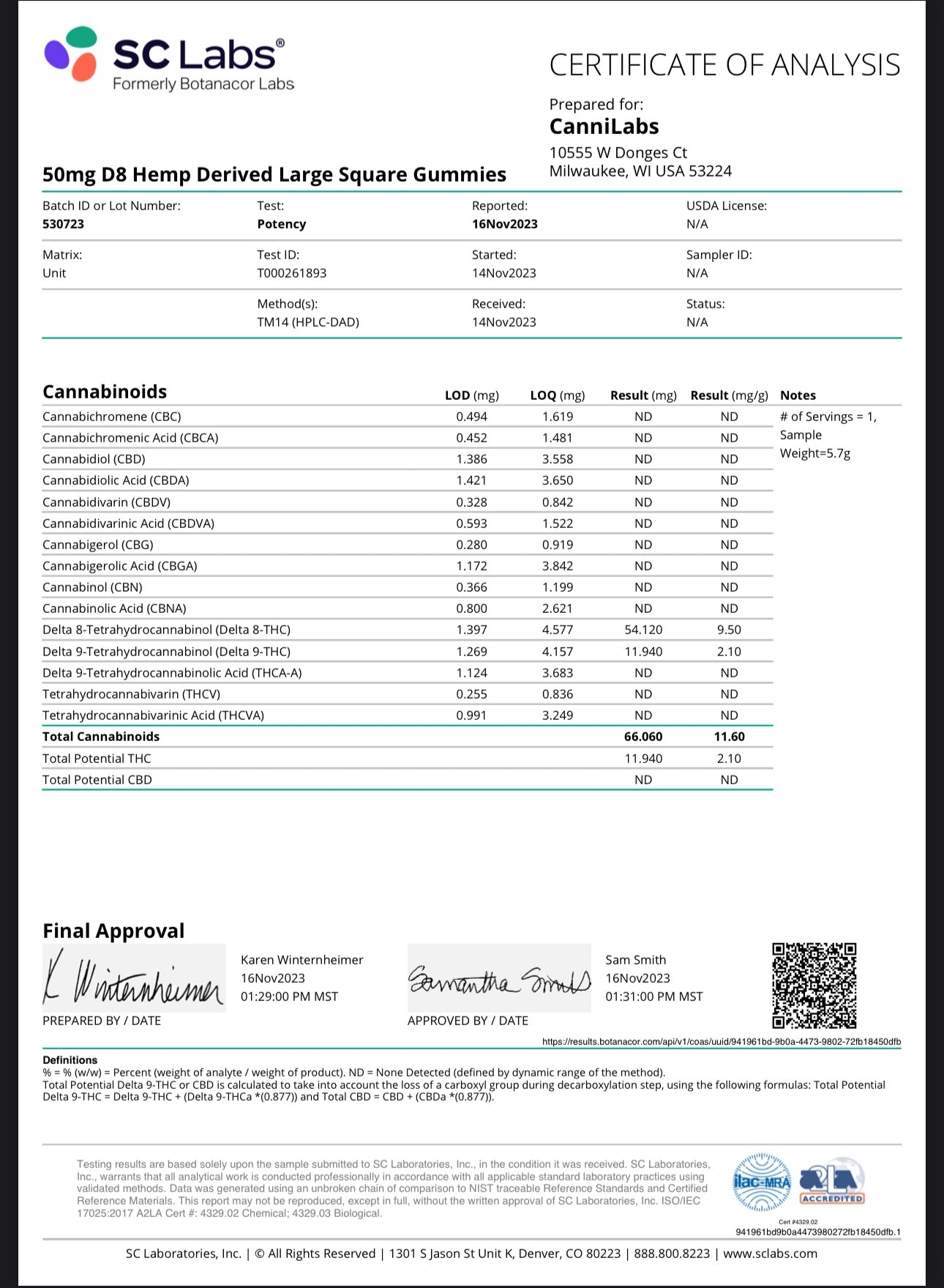 - Potency: 50 MG Δ8 THC per gummy (1500 MG per tub)