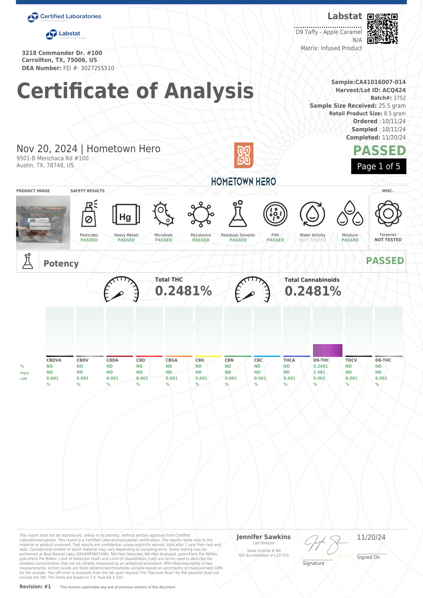 - Δ9-THC: 0.20% (below the 0.3% legal threshold)