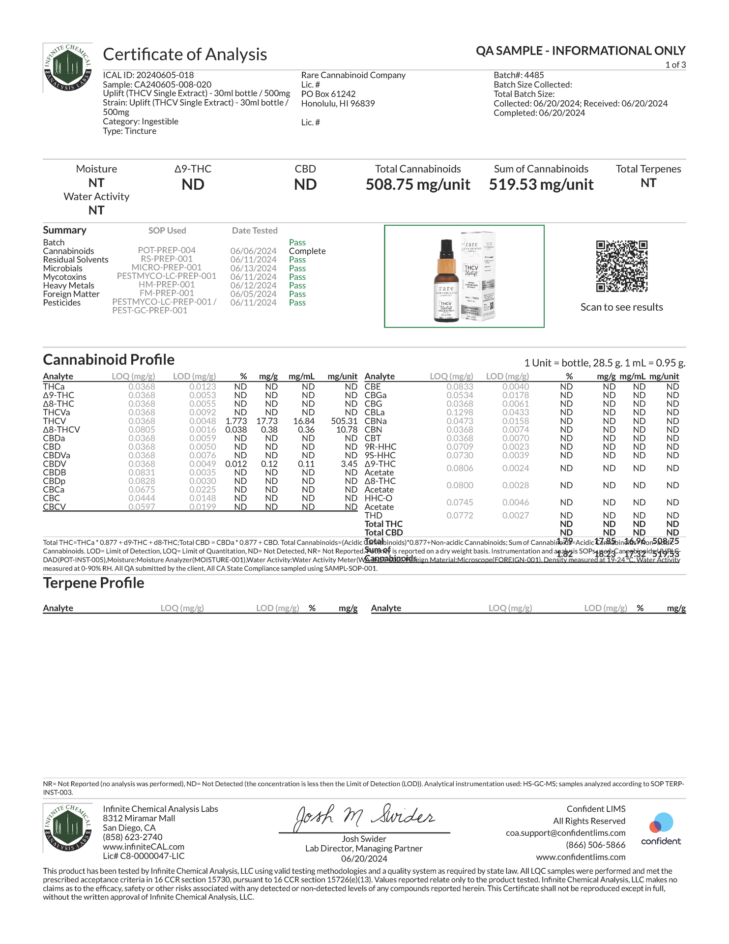 Rare Cannabinoids THCv + CBD Uplift Gummies